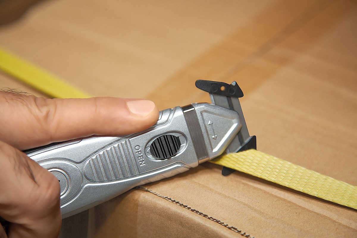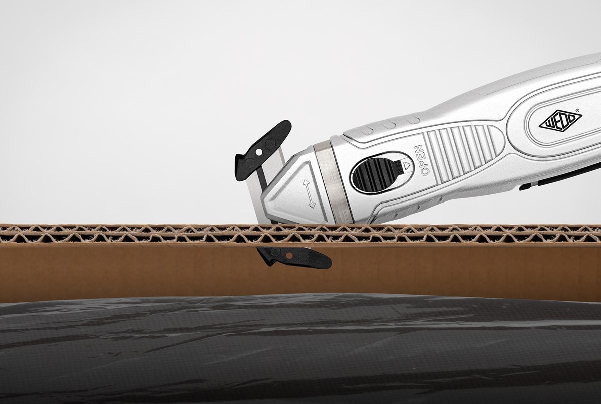 Den skyddade klingan minimerar risken för skärskador och förhindrar att innehållet i förpackningen skadas. Med den integrerade plastdelen på bladskyddet kan du enkelt skära upp tejp och öppna paket snabbt och effektivt.
