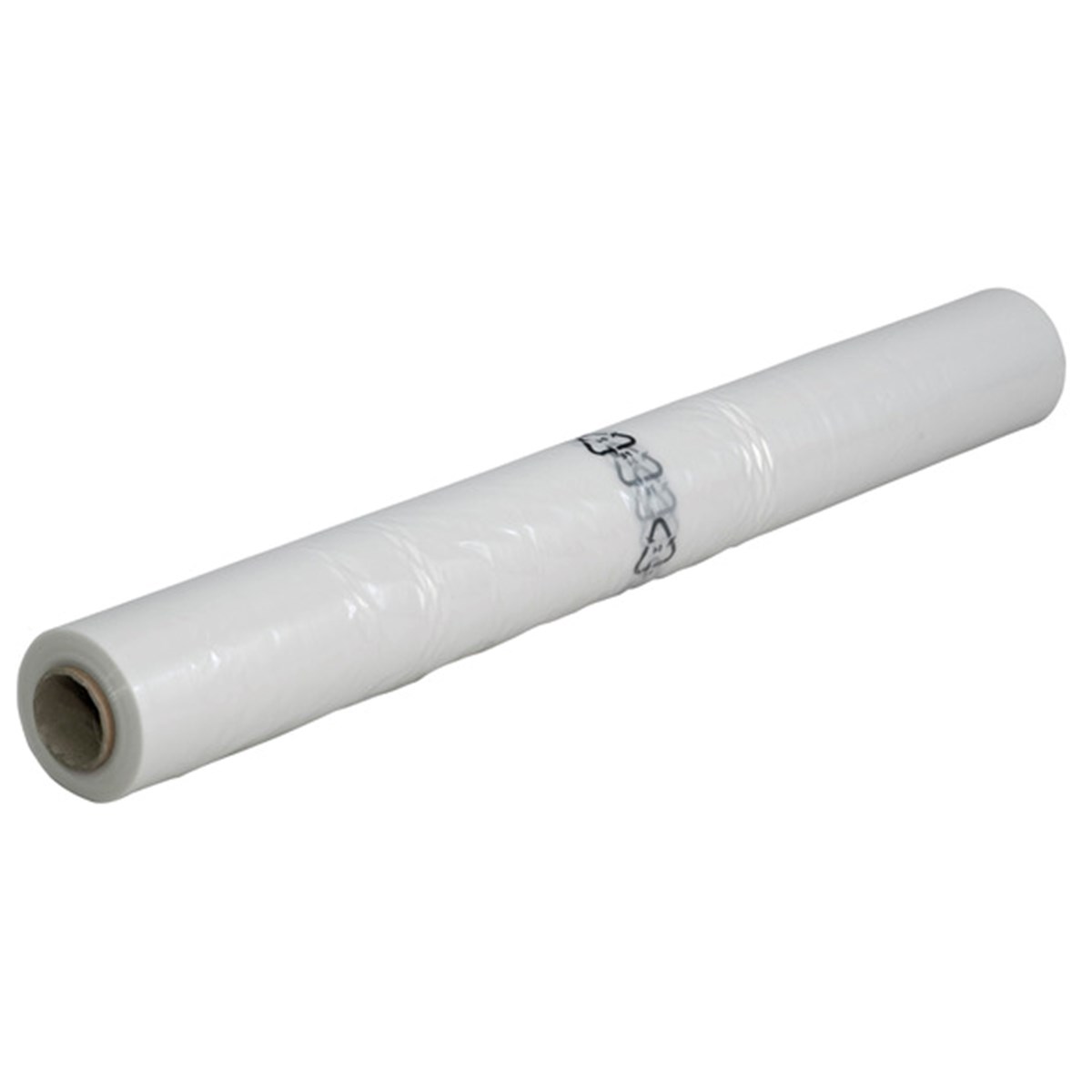 Polyetenfolie som används som toppark vid sträckfilmning av pallar. Levereras perforerad eller operforerad på rulle. Med återvinningssymbol.
