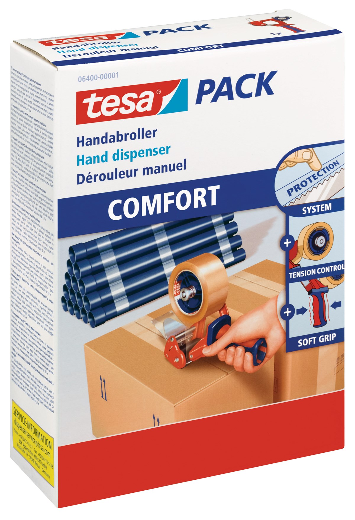 En professionell handhållare för förpackningstejp. Den är robust och klarar tesa®-packtejp upp till 50 mm bredd. Systemet med dolt blad skyddar mot skador (bladskydd). Tejphållaren har spänningsreglering och är justerbar för hand. Med ett mjukt gummihandtag som ger ett bekvämt och säkert grepp.