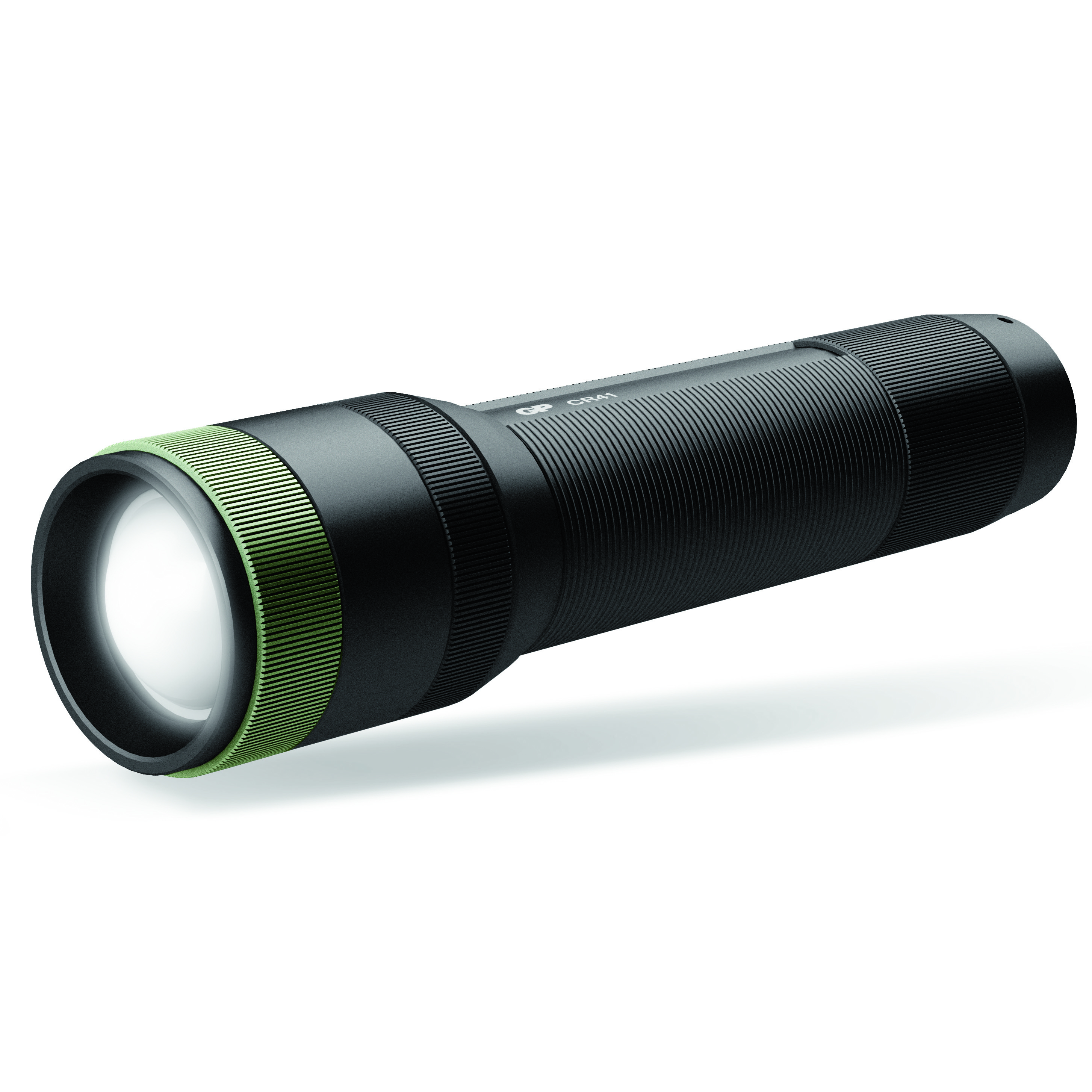 En liten, robust och greppvänlig ficklampa med tåligt, anodiserat aluminiumhus. Ljusfokus kan enkelt ändras genom att rotera lamphuvudet. Två ljuslägen och ett SOS-läge. Ljusstyrka 300 lumen. Vattentålig konstruktion (IPX4). 15 timmars brinntid. Ljuslängd: 100 m. Drivs med 3 st AAAbatterier (medföljer).