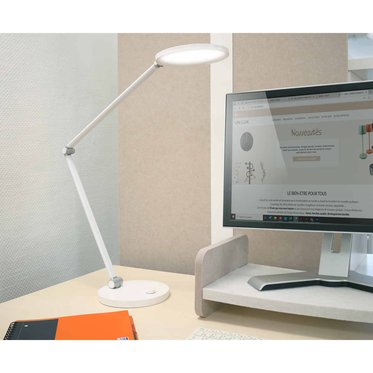 Omega-lampan levererar skräddarsydd belysning tack vare sin tredubbla led och justerbara ljusstyrka. Dess moderna, minimalistiska utseende kombinerat med nästa generations LED-lampor ger ett mjukt, flimmerfritt ljus, perfekt för att minska ögontrötthet och säkerställa långvarig visuell komfort.