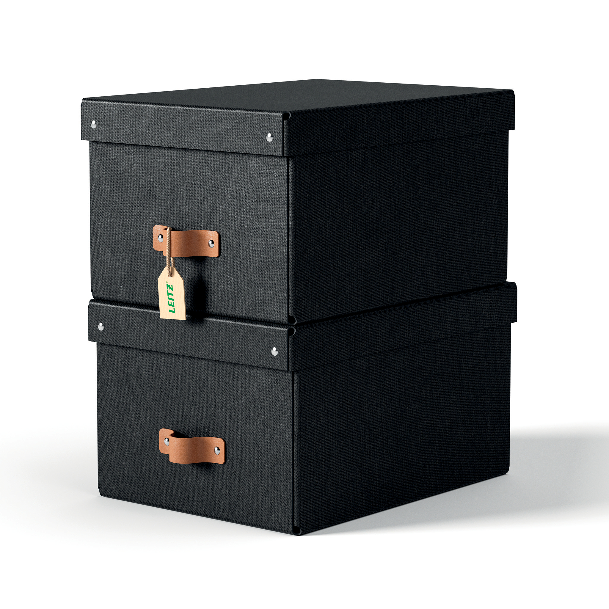 Urvalet av jordnära färger - inspirerade av naturens renhet och enkelhet - passar perfekt till din inredning och ger en känsla av lugn i dina rum och på dina kontor. Varje liten förvaringslåda från Leitz har ett draghandtag i läder som gör dem lätta att ta fram från hyllor och förvaringsenheter. Tillverkad i Italien.