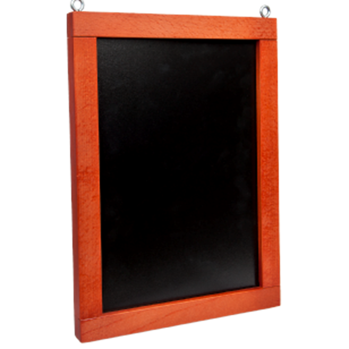 Ram av rödbetsad trä med skrivbar griffelyta.