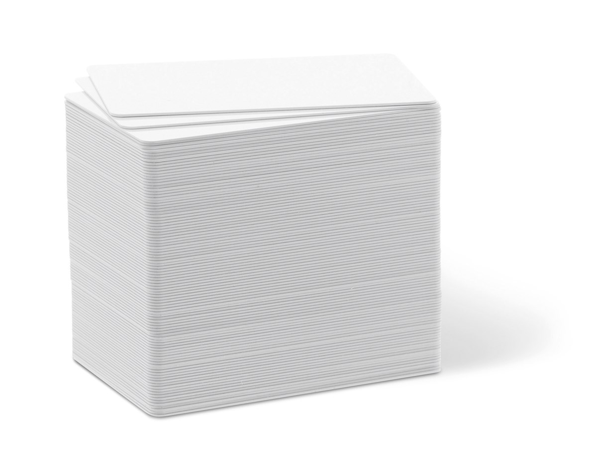 100 st tjocka (0,76 mm) PVC-kort i kreditkortsformat (53,98 x 85,60 mm) för utskrift i Duracard ID 300.