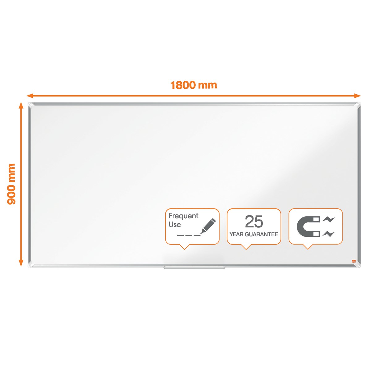 Emaljerad magnetisk whiteboardtavla med en modern elegant ramkant i aluminium. Fästes med genomgående hörnmontering och inkluderar ett stort pennfack för förvaring av whiteboardpennor och sudd. Emaljerad magnetisk whiteboard yta erbjuder en överlägsen grad av raderbarhet och hållbarhet för frekvent användning. En Nobo whiteboardpenna medföljer. EU Ecolabel certifierad, licensnummer PL/049/002/002. 25 års garanti på ytan.