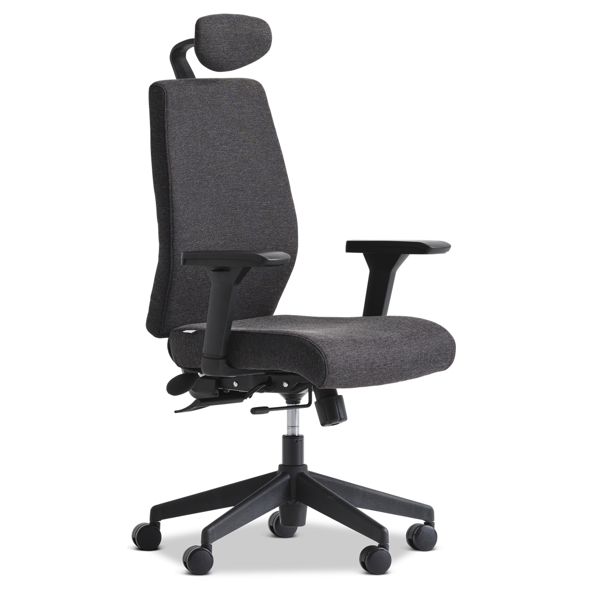 Adenau är en riktigt bekväm arbetsstol. Utvecklad för att kunna användas hela dagen på kontoret. Funktioner så som justerbart nackstöd, justerbara armstöd, sittdjup, synkron gunga låsbar. Justerbar höjd med extra hög sitthöjd. Svankstöd justerbart med pump. Klädd i tyg Ebba antracitgrå