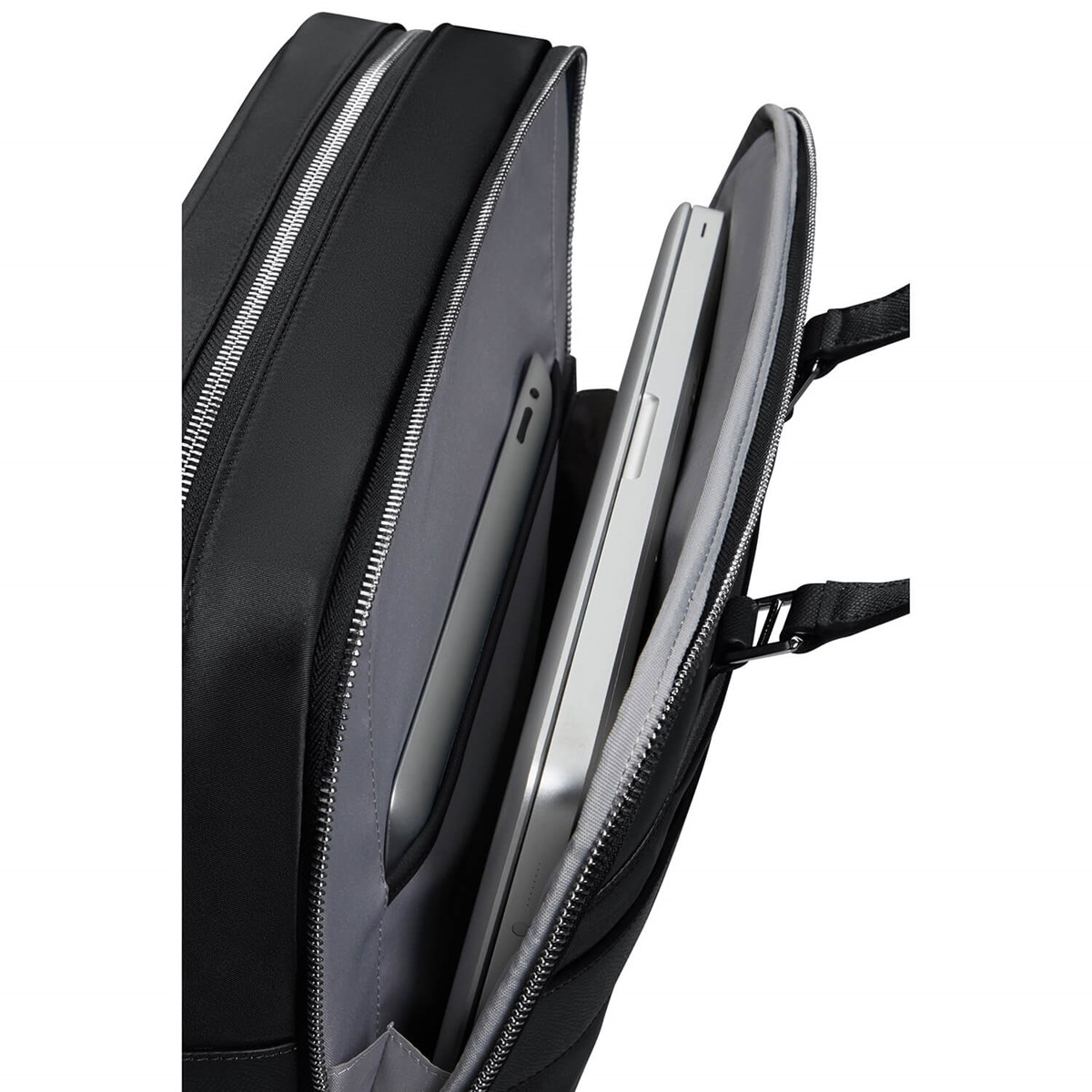 Portföljen har en dedikerad ficka för en 15.6" dator och en ficka för en 10.5" surfplatta, vilket gör den idealisk för både arbete och fritid. Den är utrustad med dragkedjor, topphandtag och en löstagbar axelrem för bekväm bärning. En smart sleeve på baksidan gör det enkelt att fästa väskan på en resväska.
