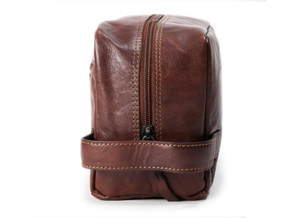 Toiletry bag, en praktisk och rymlig necessär tillverkad i exklusivt buffelskinn. Mått: 110 × 250 × 155 mm.