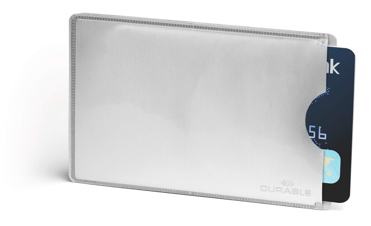 RFID-fodral för betalkort som skyddar mot obehörig läsning av data. Plats för 1 kort i kreditkortsformat. Tumgrepp för snabb åtkomst. TÜV-testat skydd till 13,56 MHz. Innermått: 54 x 86 mm.