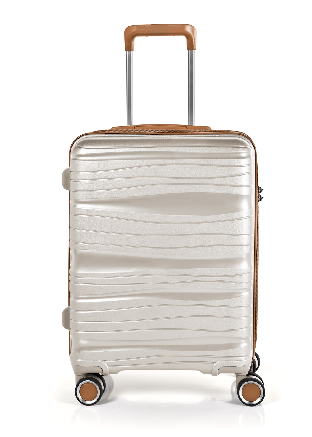 Set med tre resväskor i storlekarna 20, 24 och 28 tum. De är lätta och slitstarka, inget onödigt extramaterial - och storlekarna anpassade till olika typer av resor. Extra snygg design med bruna detaljer som gör den lättare att urskilja på  bagagebandet. Alla väskor har fyra dubbla hjul som rullar lätt och tyst och med det enkla teleskophandtaget i aluminium, blir de ännu smidigare att resa med. Väskorna är tillverkade av PP plast som är en tålig plast och den matta ytan gör den mer reptålig. Antistöld dubbel-dragkedja. Inbyggt TSA-lås. Garanti 2 år.