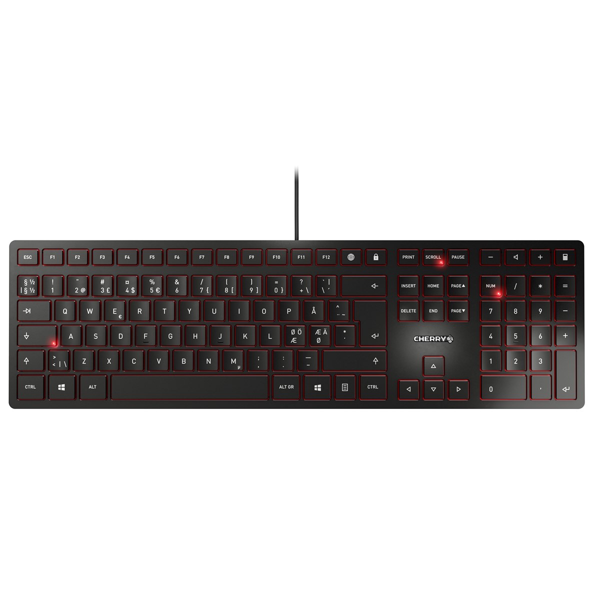 Cherry KC 6000 slim är ett kompakt och stilrent tangentbord med en hållbar konstruktion och integrerad metallplatta. Det har en högkvalitativ saxmekanism som ger precist tangentnedslag, tydliga statuslampor och sex extra funktionstangenter. Tangenterna är slitstarka och håller för över 10 miljoner tryckningar.