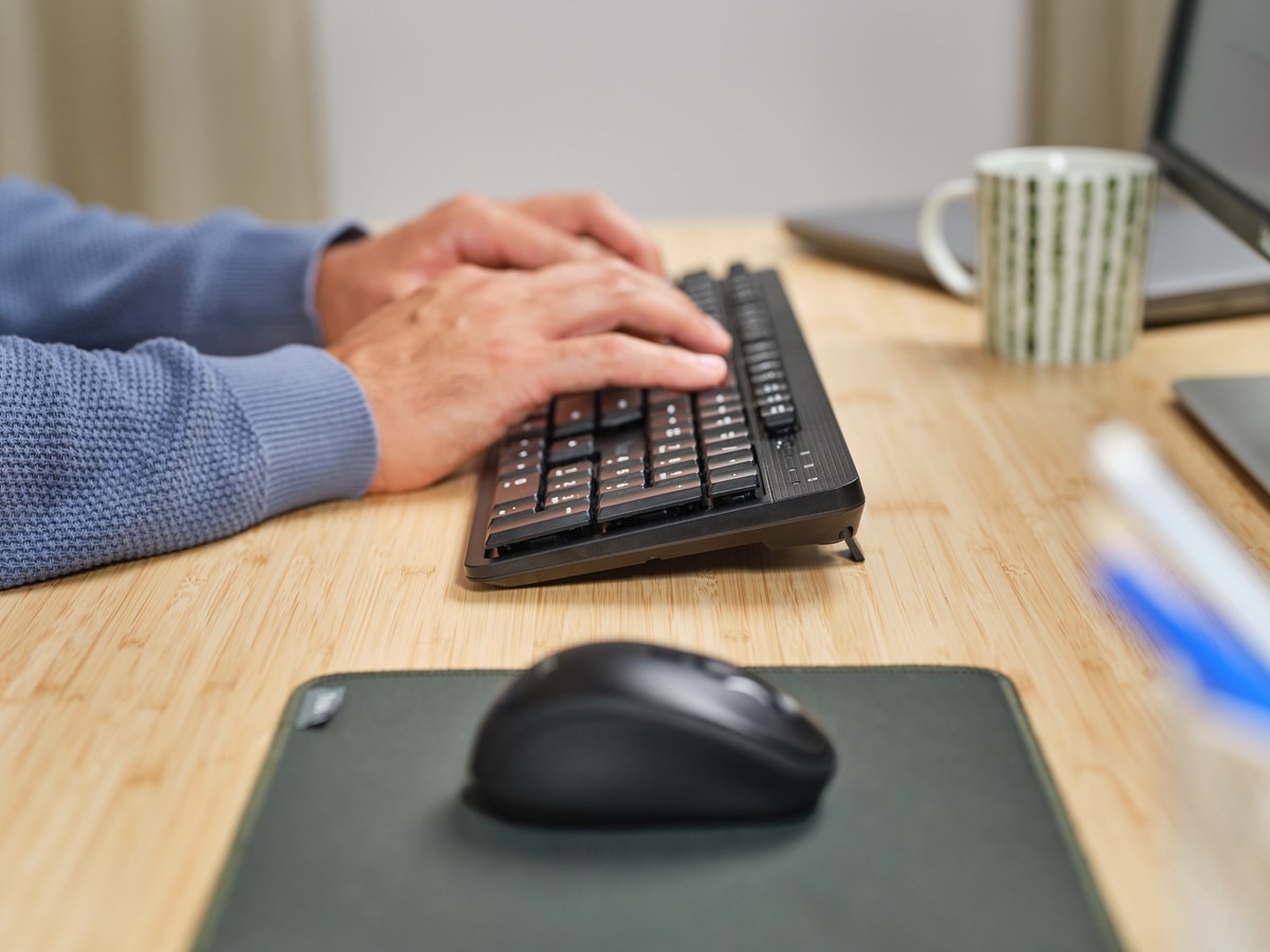 Set med trådlös mus och tyst tangentbord. Med flytande lågprofilstangenter och justerbar skrivvinkel säkerställer TKM-360 komfort hela dagen. Med lättillgängliga media och snabbtangenter kan du styra vad du behöver med en knapptryckning. På/av-knapp för att hjälpa dig att bevara batteritiden. USB-mottagaren förvaras inuti tangentbordet när den inte används.