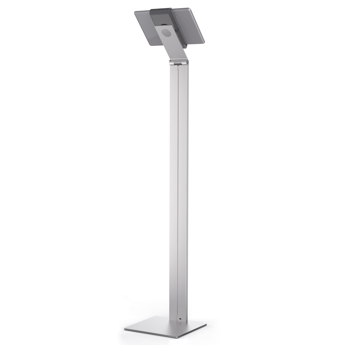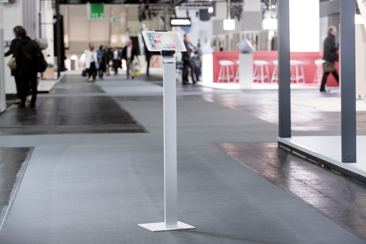 Tidlöst golvstativ med hållare för surfplatta är ett första klassens hjälpmedel för presentationer och informationsdelning i offentliga miljöer, på mässor, utställningar, hotell och restauranger. Passar surfplattor från 7" till 13" / 160 mm till 275 mm. Surfplattan är enkel att sätta i och ta ur hållaren, som låses med nyckel. Vridbar 360° för användning i både stående och liggande format, med stopplägen vid varje 90°. Laddningskabeln ansluts genom en öppning i hållaren. Kabelhållaren på baksidan av stativet kan justeras i höjdled.