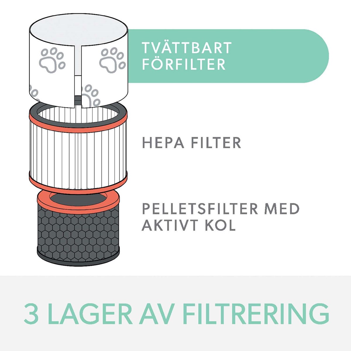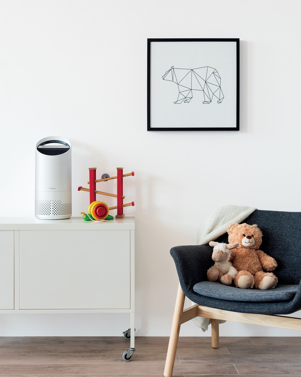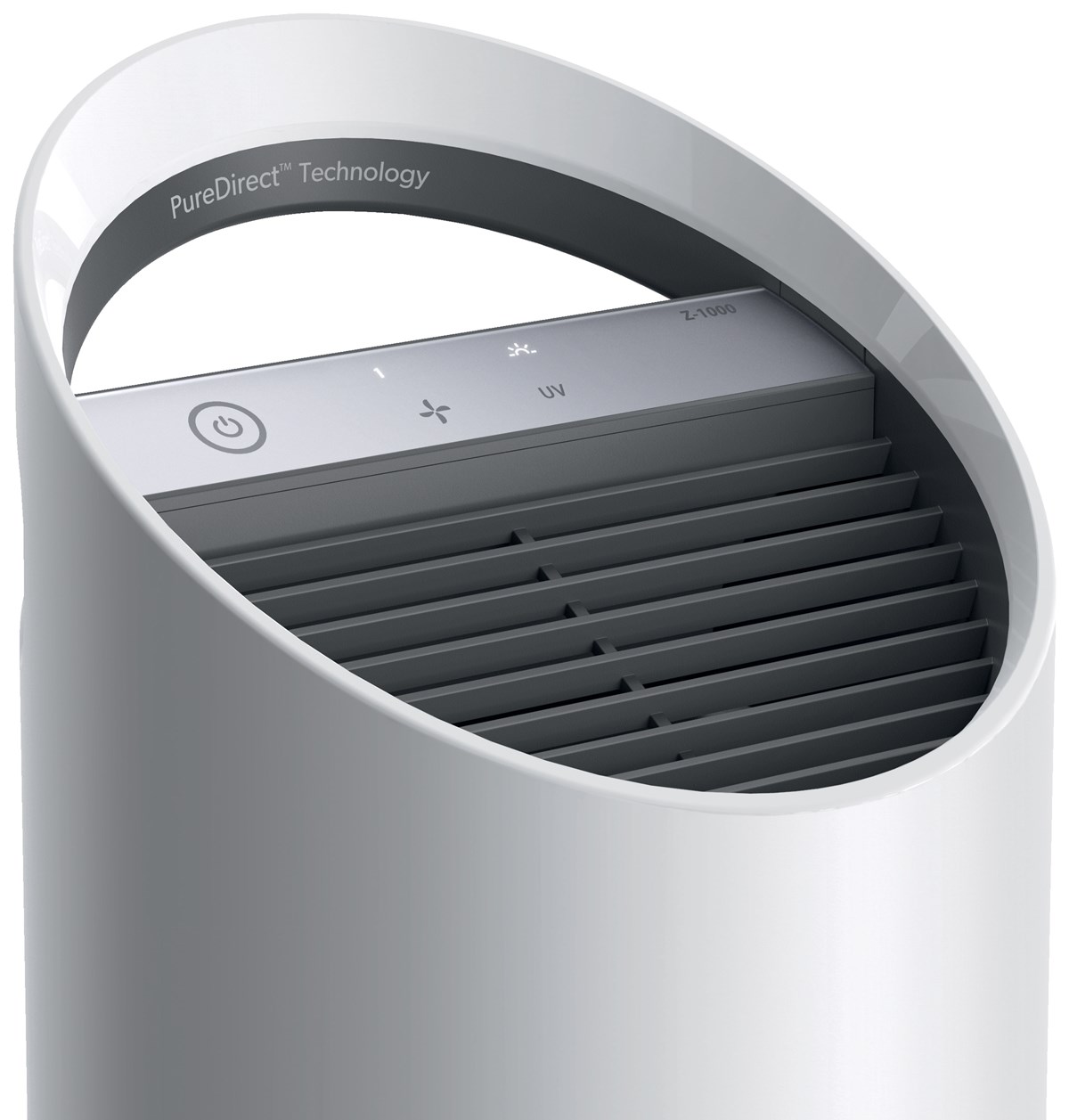 PureDirect teknolig distribuerar luften mer effektivt. Med den här teknologin som använder två luftströmmar distribueras luften längre och jämnare i hela rummet. 360 gradigt partikel luftfilter fångar föroreningar och ett kolfiber förfilter tar bort VOC gaser och lukter från alla håll. UV-C lampan dödar de bakterier som fastnar i filtret. Idealisk för rum upp till 23 kvadrat med Clean Air Delivery Rate (CADR) och värden på 164m3/h (Pollen), 143m3/h (Damm) and 95m3/h (Rök). En touchknapp kontrollerar fläktens hastighet, UV-inställning och filterbyte indikator. Modern design som passar i alla miljöer. Lätt att flytta med ett smidigt inbyggt handtag.