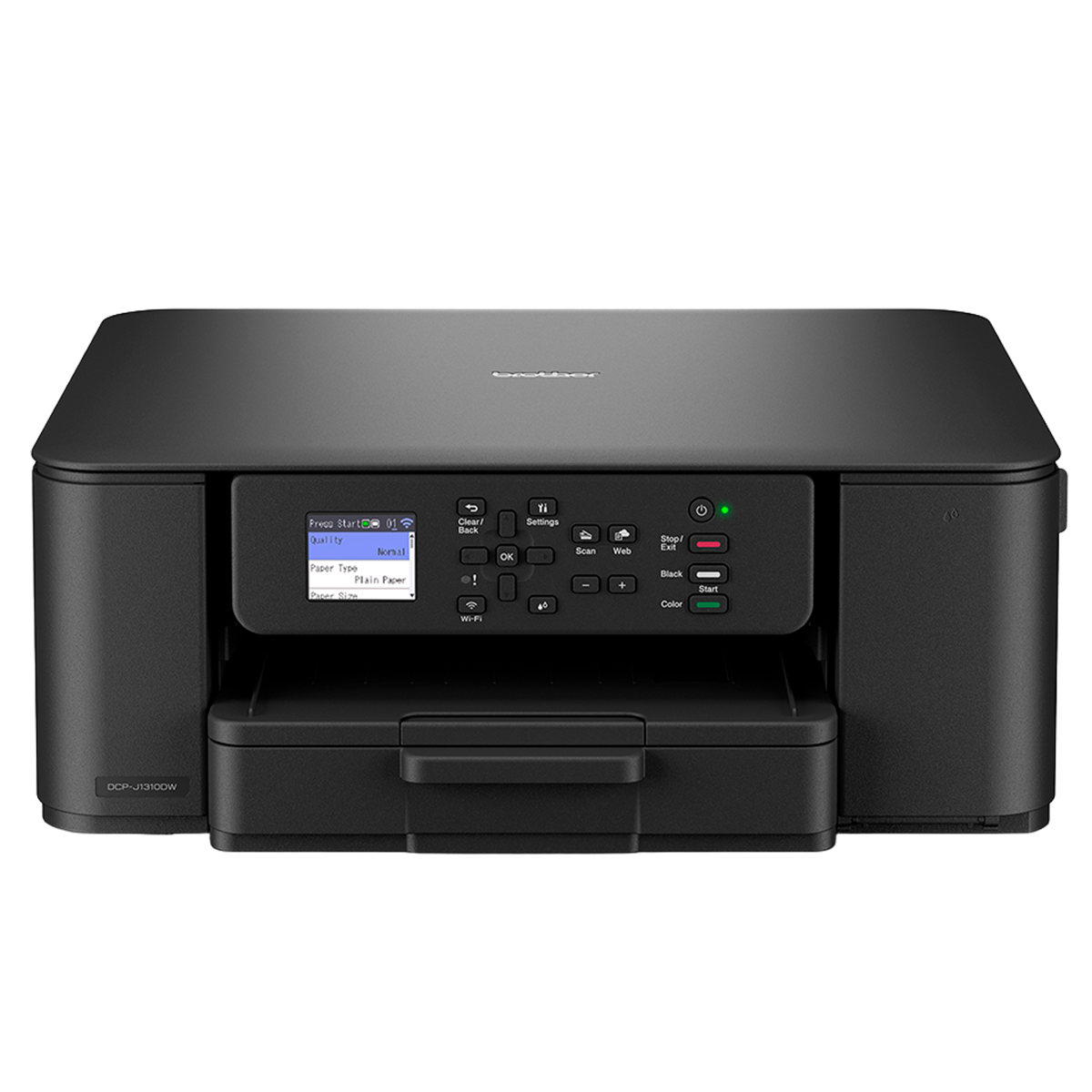 Med sin kompakta design, mångsidiga funktioner och ett inmatningsfack för 150 ark papper gör bläckstråleskrivaren DCP-J1310DW det enkelt att skriva ut. Skriv enkelt ut, skanna och kopiera från en enhet och navigera med hjälp av den inbyggda färgskärmen.