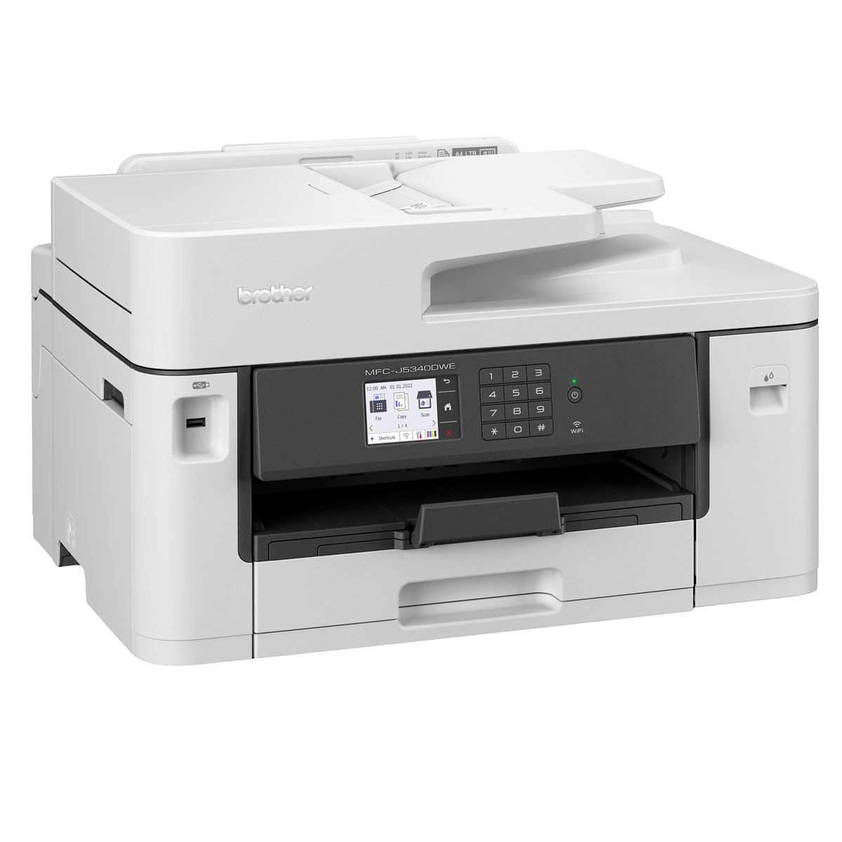 Den här multifunktionsenheten erbjuder utskrifts-, kopierings-, skannings- och faxfunktioner. Skriv ut från din arbetsstation, i ett mötesrum eller från din mobila enhet med trådlös anslutning. 6,8 cm LCD-färgpekskärm. Papperskapacitet för 250 ark och automatisk dokumentmatare för 50 ark.