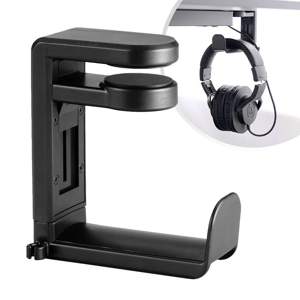 Det vridbara 360° greppet roterar helt så att du säkert kan stuva undan dina hörlurar under skrivbordet och dra ut dem lätt igen. Headsethållarens klämhöjd kan ställas in från 1 till 4 cm. Klämmer fast på skrivbord upp till 4 cm tjocka och så smala som 1 cm för en nästan universell passform på de flesta skrivbord. Antislip- och antirepnings-kuddar med upphöjd design. Den halkfria och mjuka gummikudden är för att förhindra repor på skrivbordets yta. Hörlursstativet tar lite utrymme, det är perfekt för att hålla över alla typer av hörlurar, Bluetooth-hörlurar, brusreducerande hörlurar, spelhörlurar eller telefonheadset. Den har ett litet clips som håller din hörlursledning snygg och organiserad, eller också kan användas för USB-kablar och laddningskablar. Passar alla hörlurar. Det kan också användas för att hålla spelkontroller, kablar eller andra prylar. (Max totalvikt 1 kg).