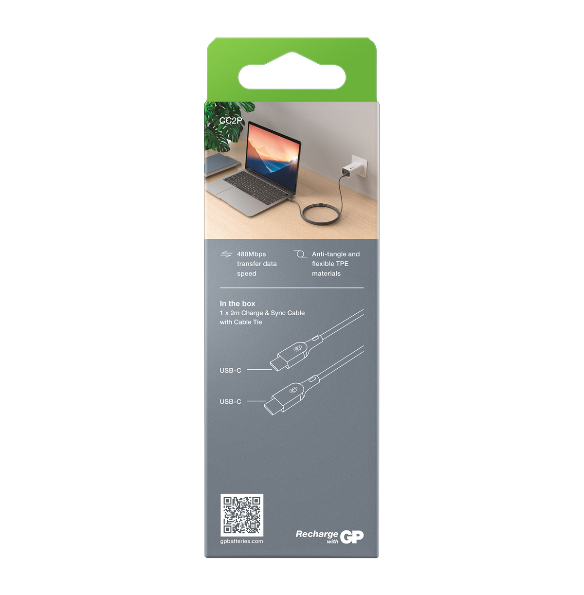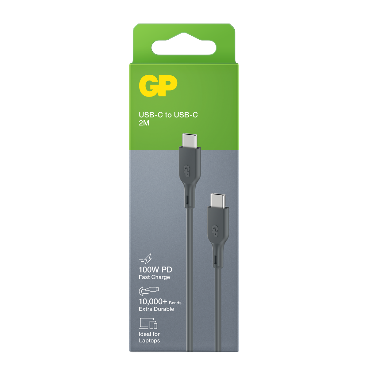 Charge & Sync-kabeln från GP är den perfekta kabeln för daglig användning. Kabeln är tillverkad av böjligt material som gör att den kan sträckas och böjas över 10 000 gånger utan att gå av. Den laddar en bärbar dator fullt på 1,5 timme.* Med stöd för Quick Charge och PD-laddning med maximal uteffekt på 100 W är den perfekt för en mängd olika applikationer. Kabeln kan användas för 480 Mbps höghastighetsöverföring av alla filtyper så att data kan överföras blixtsnabbt.