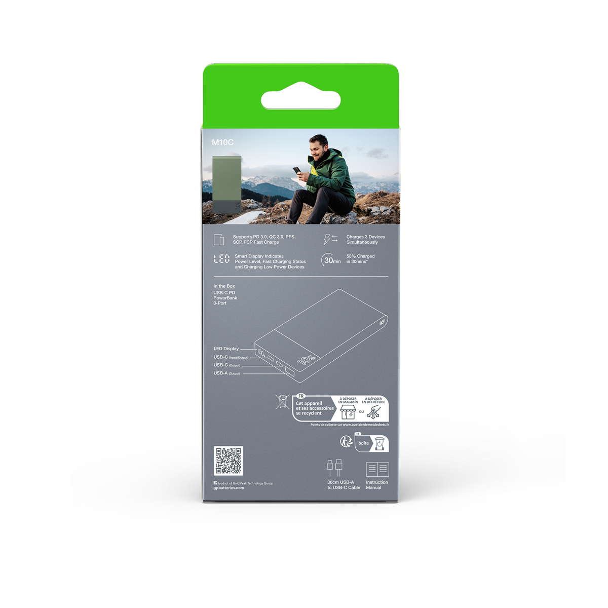M2+ PowerBank laddar din telefon till mer än 58% på bara 30 minuter! En fulladdad M2+ Powerbank räcker till två laddningar för din smartphone. Den tydliga batterinivåindikatorn i procent visar återstående batteri. Med sina sex olika säkerhetsfunktioner och sin robusta konstruktion kommer denna powerbank bli din bästa sidekick för många år framåt. 1 x USB-A och 2 x USB-C samt 6 inbyggnada säkerhetsfunktioner. 2x USB-C 1x USB-A.