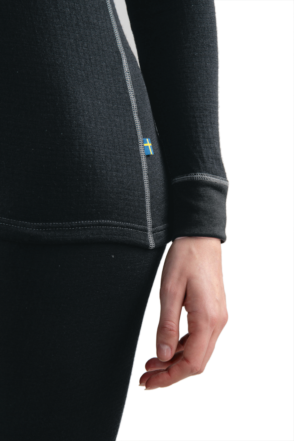 Tillverkad av ull och polyester. Termo´s Wool Set är tåligt och mjukt. Det är konstruerat för svalare temperaturer och håller dig varm, torr och fräsch. Ull är natuerns egna lösning för att reglera temperatur, samtidigt som den är luktresistent. Ullen som används i Termo´s produkter har en hög komfortnivå tack vare andningsförmåga, mjukhet och fukttransport.