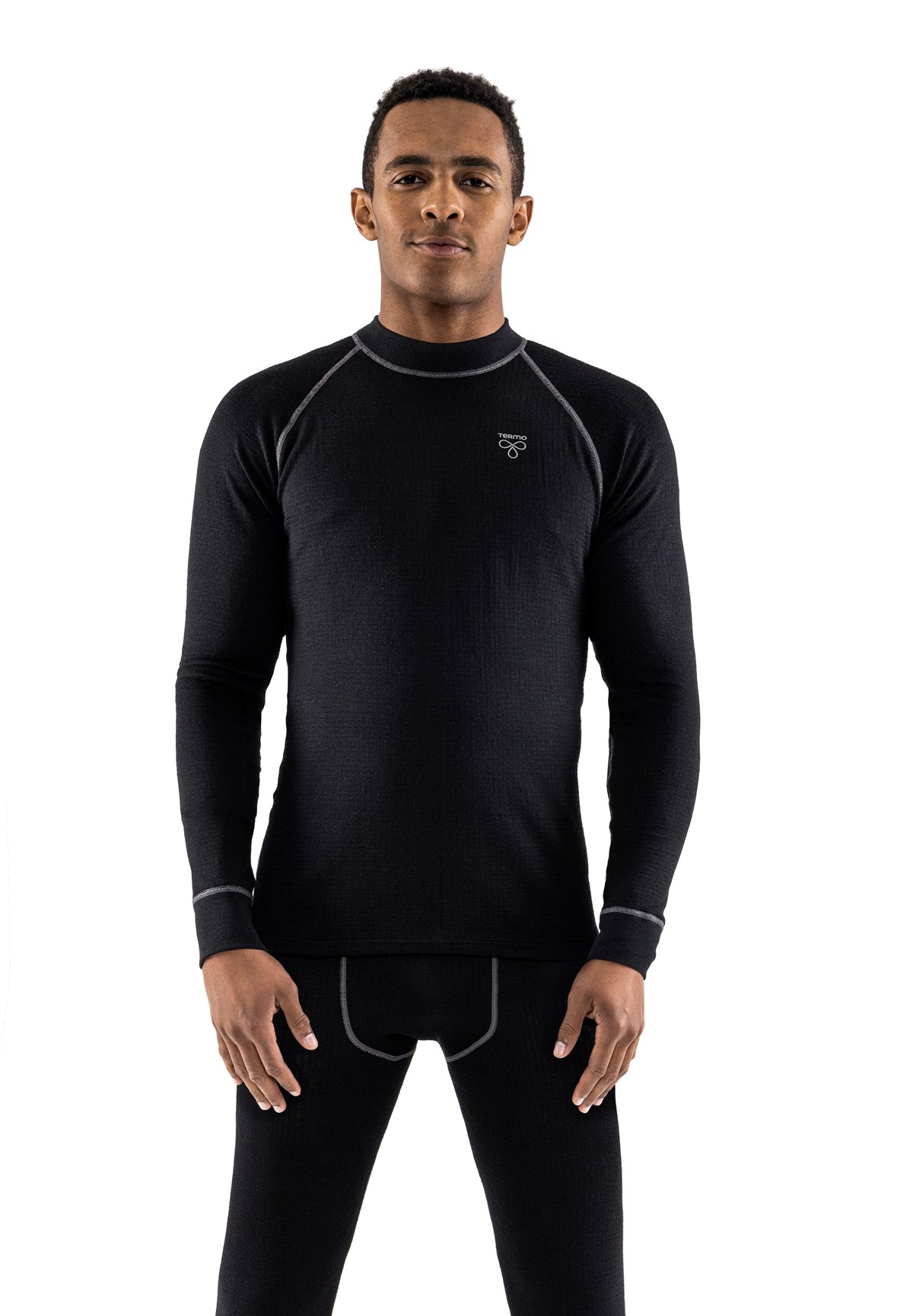 Tillverkad av ull och polyester. Termo´s Wool Set är tåligt och mjukt. Det är konstruerat för svalare temperaturer och håller dig varm, torr och fräsch. Ull är natuerns egna lösning för att reglera temperatur, samtidigt som den är luktresistent. Ullen som används i Termo´s produkter har en hög komfortnivå tack vare andningsförmåga, mjukhet och fukttransport.
