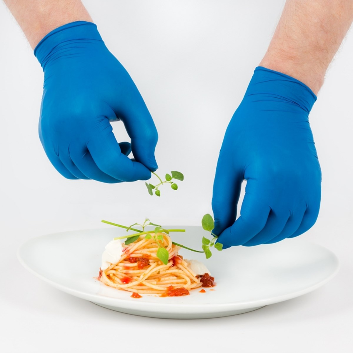 Engångshandskar i mjukt och starkt nitrilgummi, puderfria. Lättviktsnitril; extra tunna och elastiska. God fingerkänsla. Bra alternativ till engångshandskar i vinyl. Mikroruggad ytstruktur på fingertopparna för bättre grepp. Godkända för användning i direkt kontakt med alla typer av livsmedel, inklusive livsmedel med hög fetthalt (EN 1186). Vikt 2.7 ± 0.2 g. Ekonomipack, 200 handskar per dispenser.