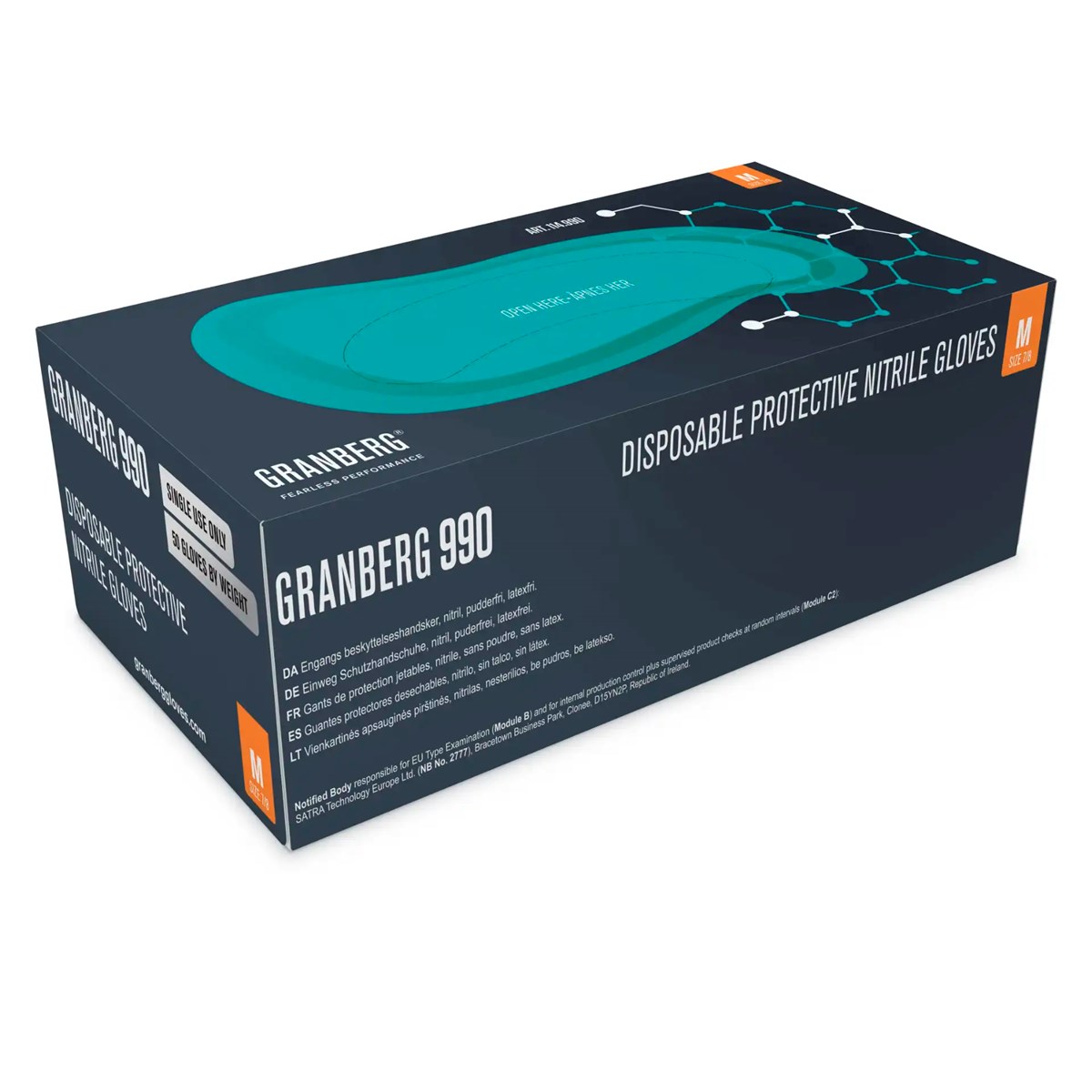 Kemikalieresistenta engångshandskar i puderfri nitril. Testade och godkända för olika kemikalier (EN 374). Textuerad ytstruktur på fingrar för bättre grepp. Mjuk och stark nitril ger komfort och slitstarka handskar. Beständighet mot fett, rengöringsmedel osv. Godkända för användning i direkt kontakt med alla typer av livsmedel, inklusive livsmedel med hög fetthalt (EN 1186). Vikt 6,2 ± 0,3 g.