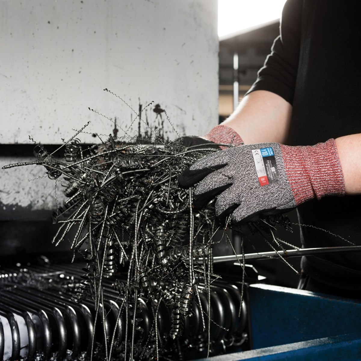 Ger ett högt skärskydd enligt EN 388:2016. Ger mycket bra rivhållfasthet och nötningsmotstånd. Dubbel sandaktig nitrilbeläggning ger högt nötningsmotstånd. Tumrotsförstärkning för extra hållbarhet och säkerhet. Flexibla, välsittande och god fingerkänsla. Typhoon®-materialet ger 360° skydd mot skär (EN 388). Beläggningen ger ett bra oljegrepp. OEKO-TEX® 100-godkända.