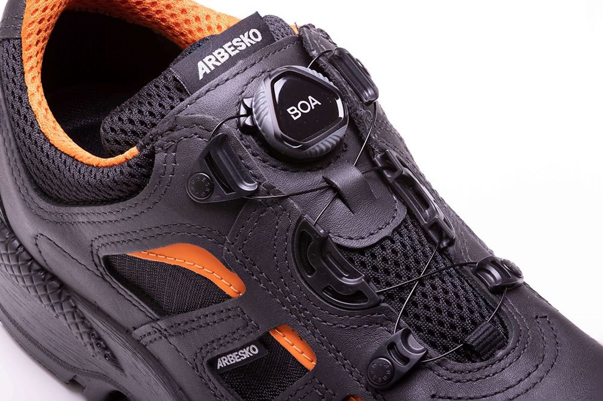 - Luftig med ventilerande polyamidnät - BOA® Fit System - Skinnet står emot fukt och väta i upp till åtta timmar - Halksäker slitsula - ESD-godkänd