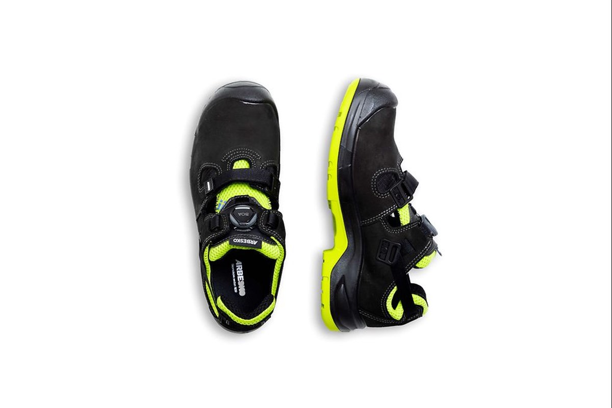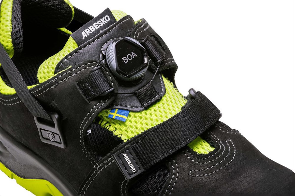 Umeå 929 är en extra luftig skyddssko utrustad med den unika kombinationen av hälrem och dubbel knäppning med kardborre och BOA® Fit System för bättre passform och enkel av- och påtagning. Skons luftiga design gör den till en perfekt sko för hantverkare i varma miljöer, både inne och ute. Skon är utrustad med tåhätta i aluminium och ett tåskydd som står emot slitage vid långa arbetspass på knä. Den elastiska hälremmen ger skon ett överlägset hälgrepp och en hög komfort vid fotens bakre del. Utsidan består av ett fullnarvigt impregnerat skinn som tål fukt och väta och står emot slitage. Skons plös är tillverkad i ett luftigt mesh-material som känns bekvämt och mjukt mot foten. I skons sula sitter ett mjukt och följsamt spiktrampskydd i textil som skyddar foten mot genomträngande föremål. En extra luftig skyddssko för varma miljöer.