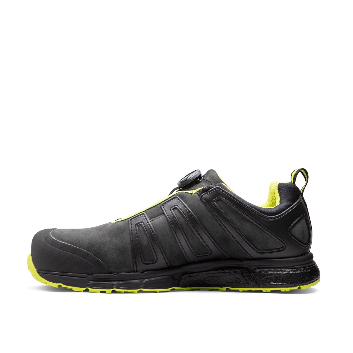 Venture från Solid Gear är en lättviktsskyddssko med god slitstyrka och atletisk design. Genom att använda den revolutionära teknologin ETPU kan sulan ge användaren optimal energiåtergivning och komfort. Ju mer energi du ger, desto mer får du tillbaka. Nu introducerar vi denna teknik även i svart utförande, med samma unika funktion. TPU-förstärkningar följer hela skons ovandel i läder och tillsammans med BOA® Fit System uppnås enastående passform och skydd. NANO-tåhättan i skon är 40 % starkare än glasfiber, trots att den är lättare och tunnare än andra icke-metalliska tåhättor. Med hjälp utav PU foamteknologi är komforten i denna sko bäst i klassen. Halkbeständighetsklass SRC ger god friktion på många olika underlag.