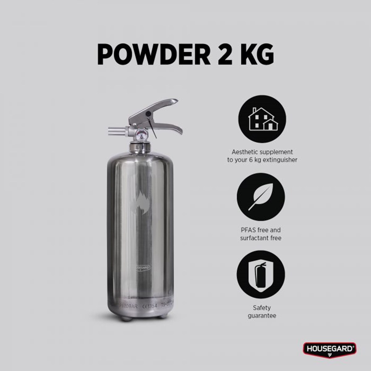 Pulversläckare Housegard PE2HR-B 2 kg steel edition