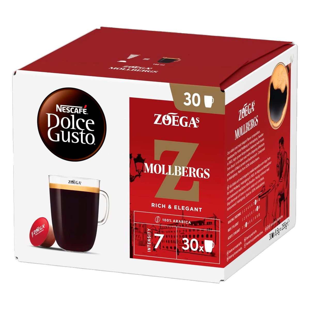 Prova NESCAFÉ® Dolce Gusto ZOÉGAS MOLLBERGS BLANDNING. Kombinationen av en mycket hög andel Arabica-bönor från Kenyas högland och en noggrann mörkrostning ger ZOÉGAS MOLLBERG BLANDNINGS-kapslarna en exceptionell och unik karaktär. Det här kaffet har en intensitet på 7 av 11, och är ett elegant och kraftigt kaffe med toner av svarta vinbär och kola balanserat med en lång och fantastisk eftersmak. Våra duktiga kaffespecialister har med den här blandningen av Arabica-bönor från Kenya och Central- och Sydamerika utvecklat ett delikat, fylligt och intensivt kaffe.