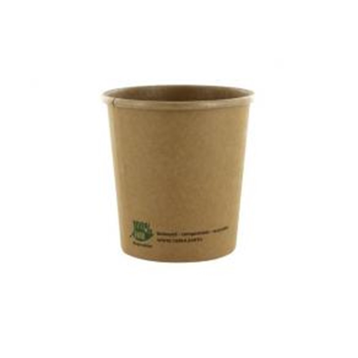 Skålar av brun papp med biobeläggning. Biologiskt nedbrytbara. Perfekta för soppor och pasta. 20 st/förp., 25 förp./kartong.