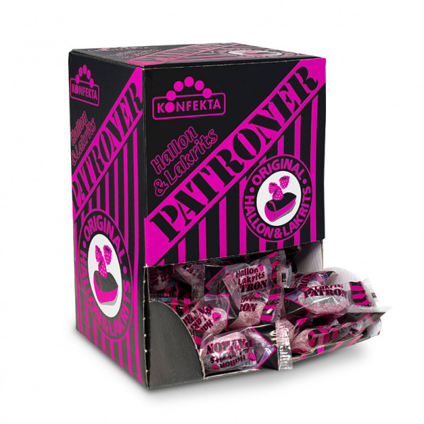Salta Patroner från Konfekta är en saltlakrits karamell som ryms i var och varannan godispåse. De salta patronerna är smidigt portionsförpackade, hårda, salta och oemotståndligt goda och älskas av både stora som små. Då patronerna är portionsförpackade kan kunderna enkelt köpa med sig en eller flera och förvara i sin jackficka utan klet. Perfekt att sälja i butik, kiosk, förening m.m.