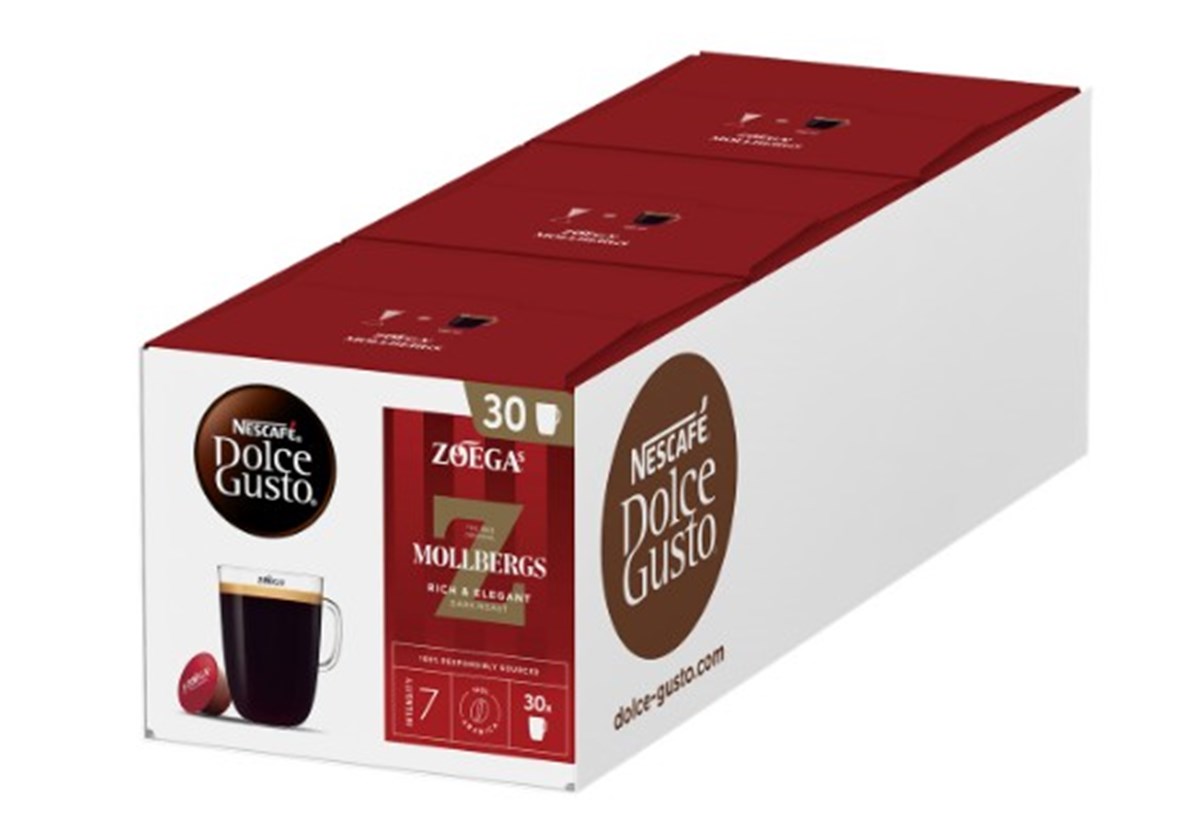 NESCAFÉ Dolce Gusto ZOÉGAS Mollbergs Blandning 30-pack kaffekapslar. Vår äldsta och mest eleganta smakkomposition som togs fram för Hotell Mollberg i Helsingborg år 1903. Av högvuxna Kenyabönor som balanserats med bönor från Latinamerika. Mustig mörkrost med lång eftersmak och toner av svarta vinbär och smörkola. Komponerad i Helsingborg. Gjord av 100% Arabicabönor.
