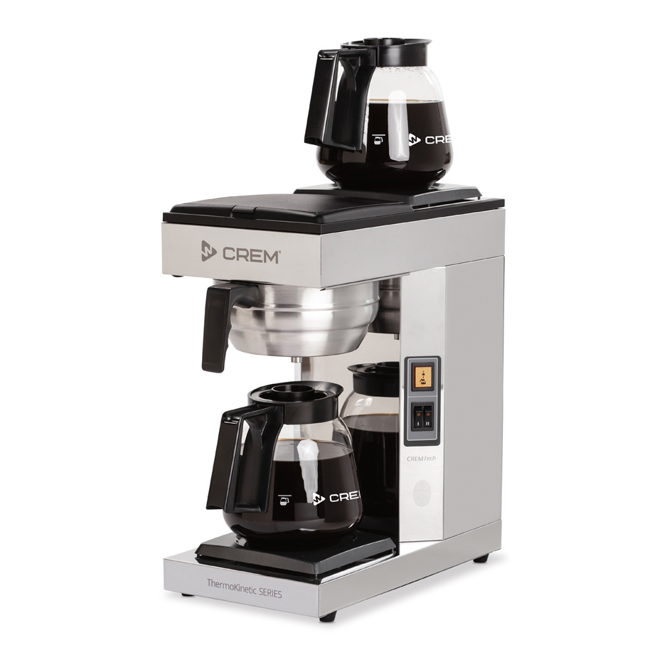 Uppskattad trotjänare med 2 värmeplattor. Bryggmängden 4-12 koppar justeras lätt. Automatisk vattenpåfyllning. Digital display och signal vid färdig bryggning. 15 liters kapacitet per timme. 2 serveringskannor på 1,8 liter vardera medföljer. Effekt: 1-fas: 2400 W. Filter: 110 mm.