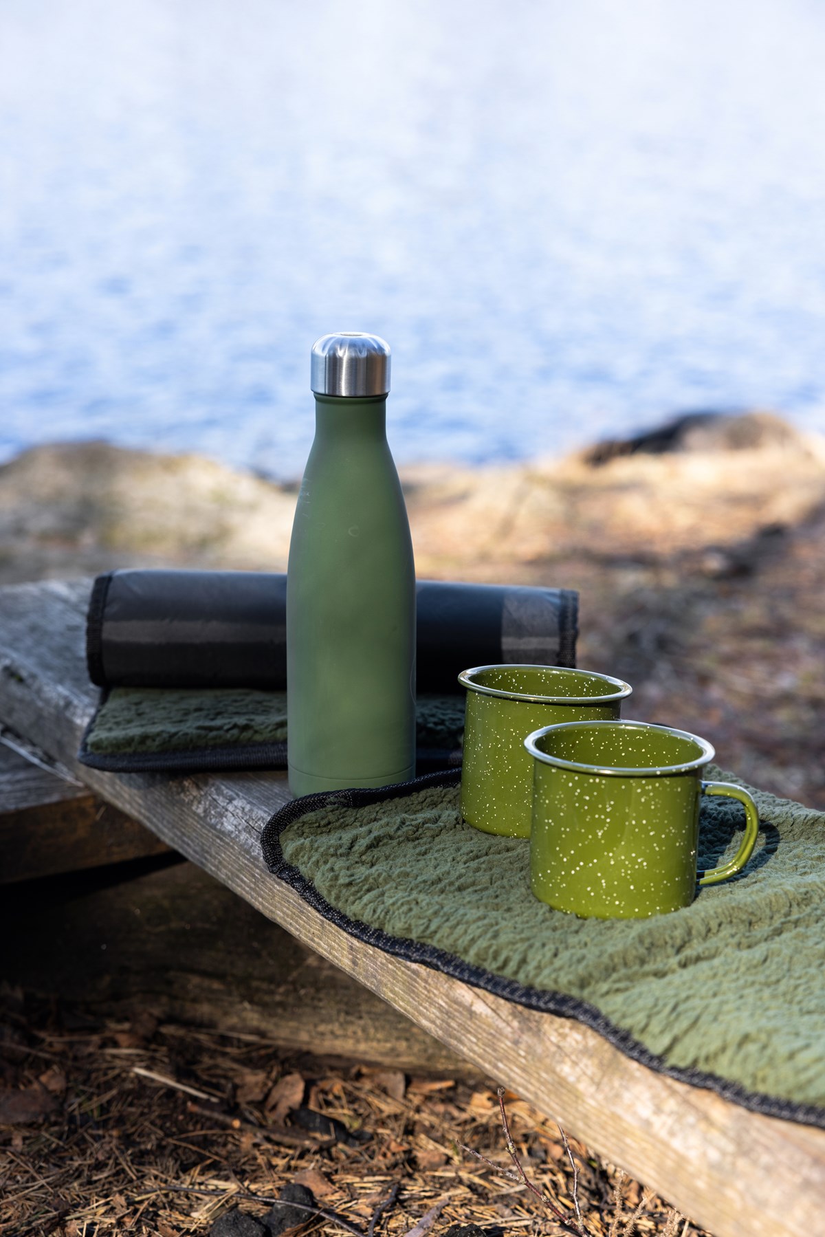 Utrusta er personal eller kanske era kunder för en avkopplande stund i skogen med detta set för längre skogspromenader. Två bekväma sittdynor med vattenavvisande undersida, en Nils rostfri stålflaska och två Doris emaljmuggar är allt du behöver för att njuta av naturen lite längre. Nils håller drycken kall i upp till 24 timmar och varm i 12 timmar, med en kapacitet på 50 cl. Denna gåva är enkelhetens perfektion och passar utmärkt i alla hem. Levereras i en elegant Perfect gift box från Sagaform.
