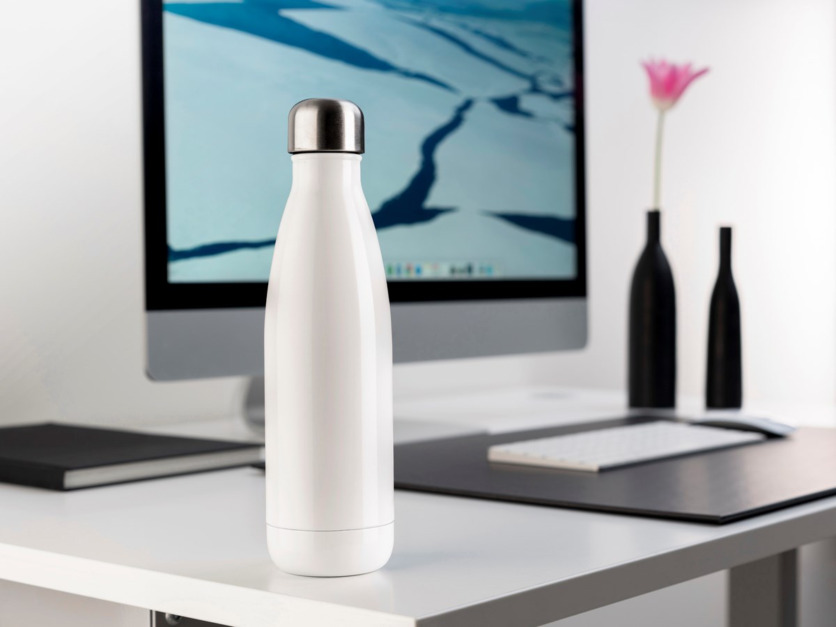 Vakuumisolerad vattenflaska gjord av högklassigt rostfritt stål. Håller din dryck kall upp till 24 timmar och varm upp till 12 timmar. Stålet i flaskan är inte magnetiskt och drar därför inte till sig smuts och partiklar, vilket gör det lättare att hålla flaskan ren. Tätslutande skruvkork med BPA-fri silikontätning. 50 cl.