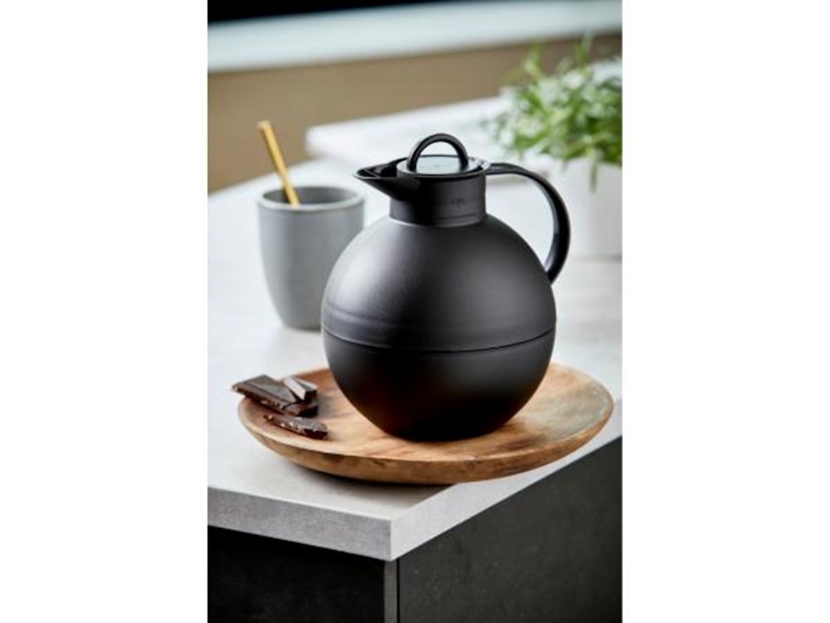 Den klassiska Kulan-kannan formgavs 1985 av Ole Palsby som döpte den till Modern Classic No. 1. Kulan-kannan är världens mest sålda termoskannedesign, och den har vunnit åtskilliga priser och visats på Museum of Modern Art (MOMA) i New York. Idag framstår den runda klassikern som lika elegant, modern och estetiskt tilltalande som när den formgavs för mer än 30 år sedan. Kannan håller innehållet kallt/varmt under lång tid tack vare att klotet är den geometriska form som har störst volym i relation till ytan. AlfiDur-insats med dubbla väggar som verkar isolerande och härdat vakuum-glas. Praktiskt skruvlock. Håller vätskor varma i 12 timmar och kalla i 24 timmar. Tillverkad i Polen.