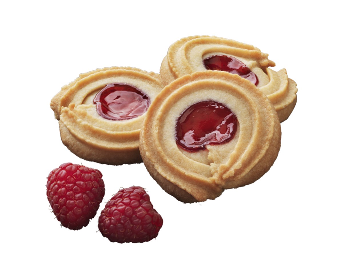 Somrig mördegskaka med frisk och riklig hallonfyllning.