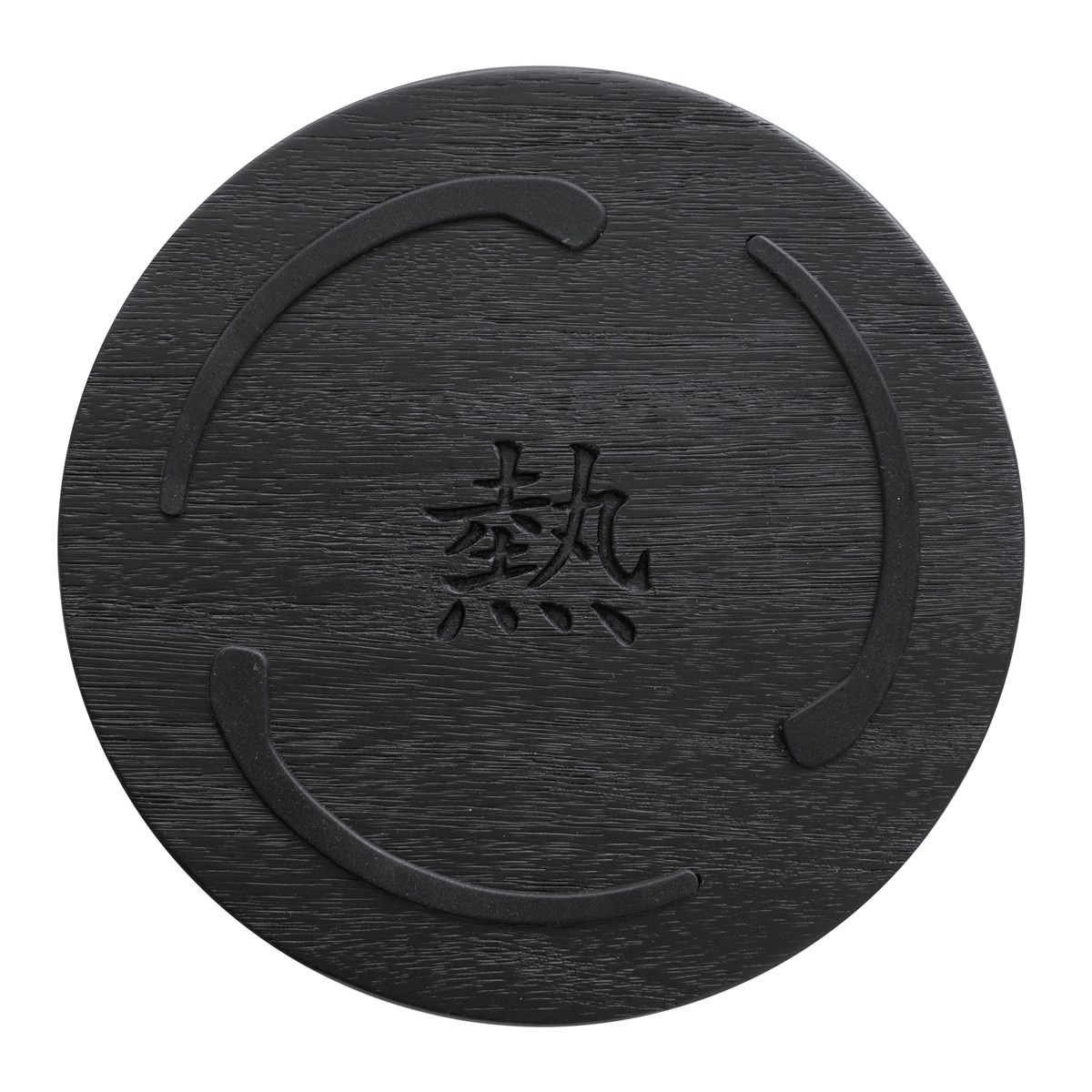 Underlägget är tillverkat av svartlackerat akaciaträ och ovansidan är prydd med ett tunt silikonmönster inspirerat av den japanska cirkeln "Ensō", vilket ger ett stabilt och mjukt stöd för varma kärl. I mitten är den japanska symbolen 熱 (Hetta) ingraverad, och på kanten Satakes numera klassiska logo.