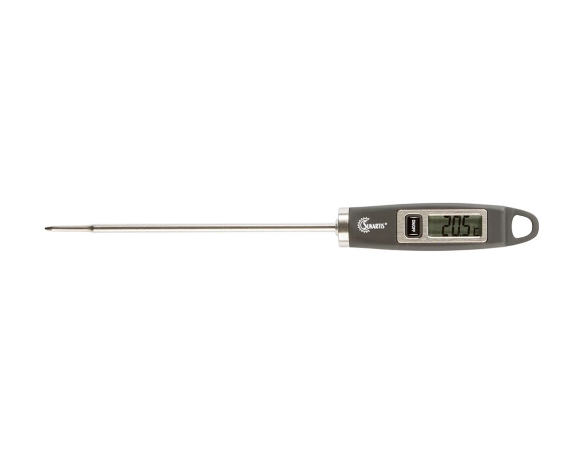 Mingle M514B är en prisvärd svart allroundtermometer som inom sekunder visar aktuell temperatur. Oumbärlig när du måste ha exakt koll på temperaturen för att få perfekt resultat. Termometern fungerar precis lika bra till steken, fiskn och frityroljan som till vinet, vällingen eller till exempel degvätskan. Längd 20 cm. Batteri (1 st LR44) medföljer.