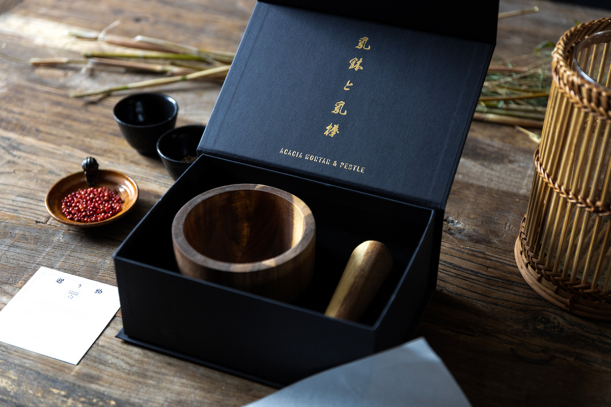 Denna vackra mortel med tillhörande stöt är tillverkad i ådrat akaciaträ – ett levande material som förhöjer både känslan och resultatet i köket. Perfekt för att stöta kryddor, örter och frön när du vill frigöra doft och smak på riktigt. Träets varma ton och mjuka linjer gör morteln lika vacker att låta stå framme som att använda. Den skålade formen ger god stabilitet och stöten ligger skönt i handen. Höjd: 9 cm, diameter: 12,5 cm.