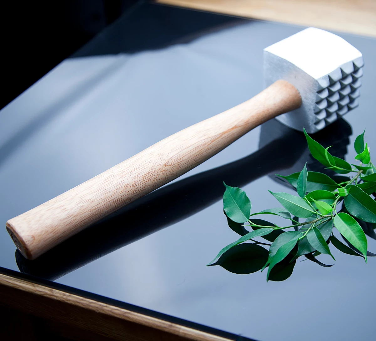 En rejäl och robust biffklubba i gjuten aluminium med ett bekvämt träskaft. Förbered köttet med enkelhet och få till ett perfekt resultat, biffklubban kommer med en taggig sida som fungerar utmärkt för att bryta sönder köttets muskelfiber. Den släta ytan används för att platta ut köttet, framtagen för det professionella köket.