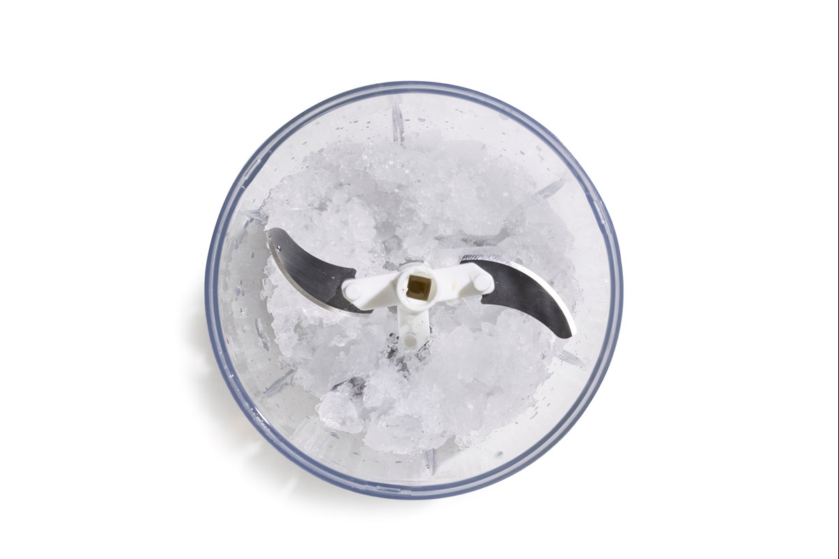 Stor universalhackare av hög kvalité. Hackar morötter, lök, kryddor, krossar is, vispar grädde etc. Dra i handtaget och de roterande bladen/vispen löser allt på nolltid. Extra lock medföljer. Mått: 12,5 x 14 cm.