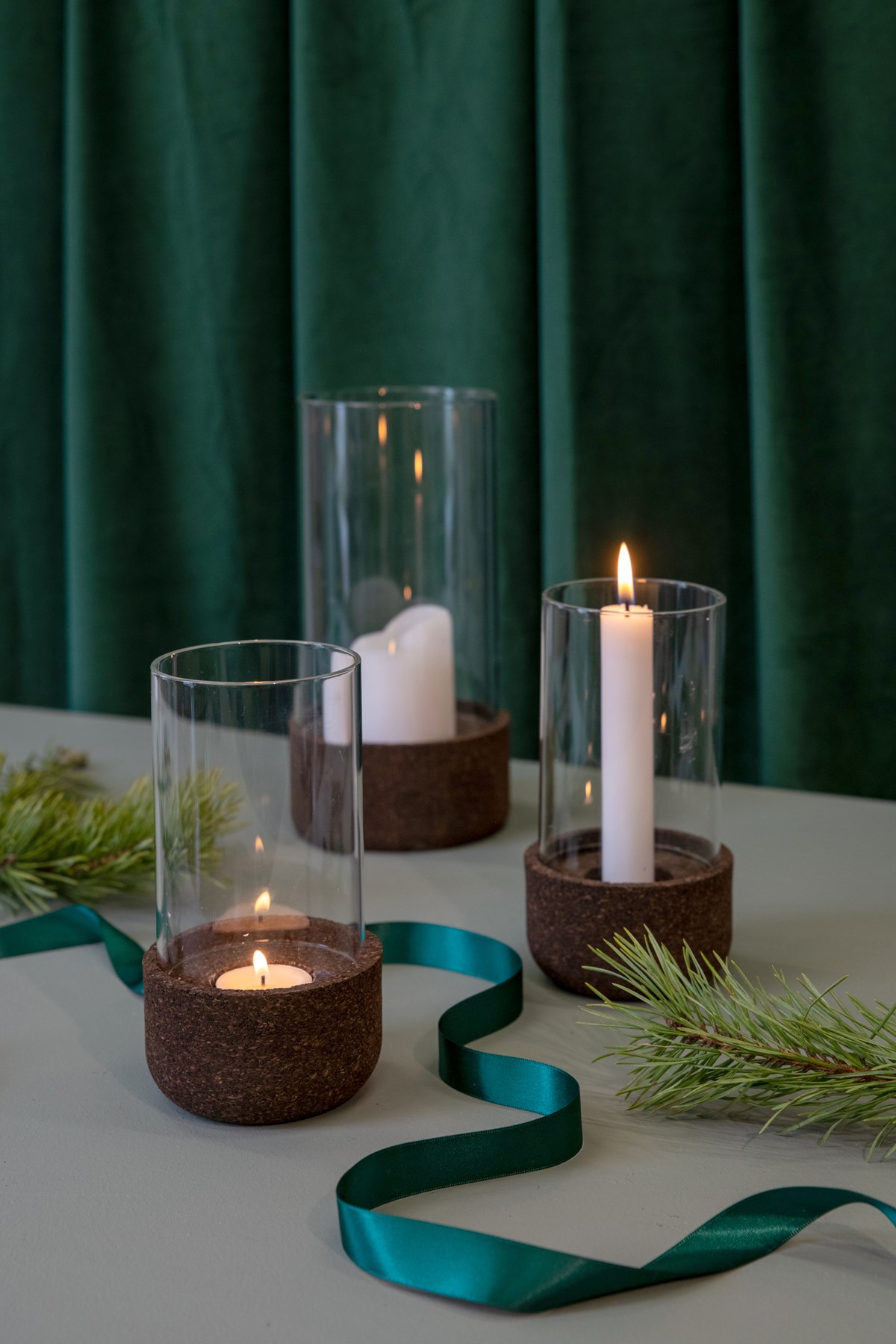 Dante ljuslykta består av kork och glas. Formen är rund, varm och välkomnande. Den ultimata funktionen är att ljuslyktan kan anpassas för olika ljus – höga ljus, blockljus eller värmeljus. Dessutom är korkmaterialet värmebeständig, helt biologiskt nedbrytbart och återvinningsbart.