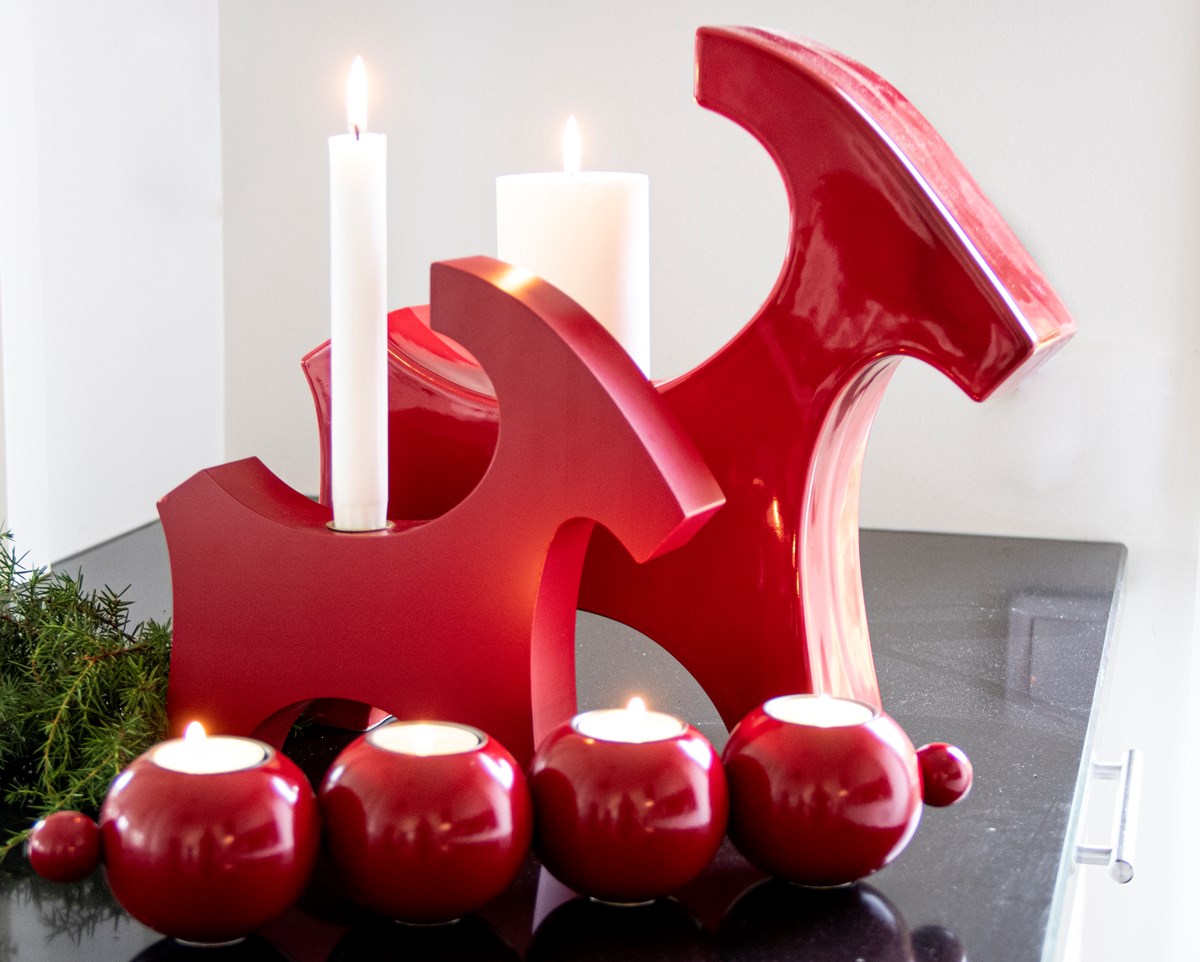 Träbock för kronljus röd