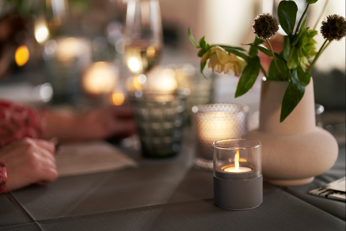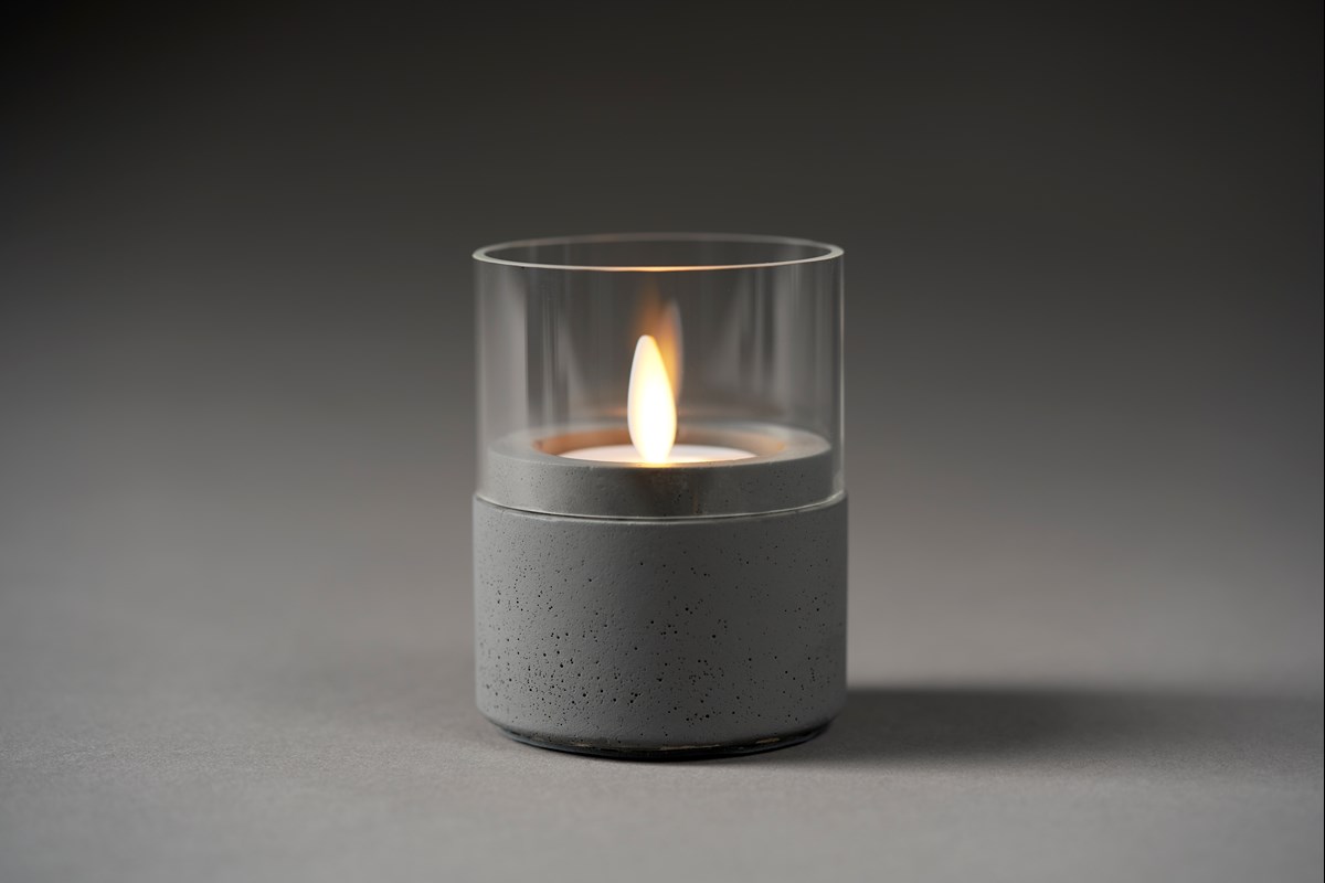 Hållare för alla typer av levande ljus och LED-ljus. Mått: 70 x Ø 61 mm. Mörkgrå.