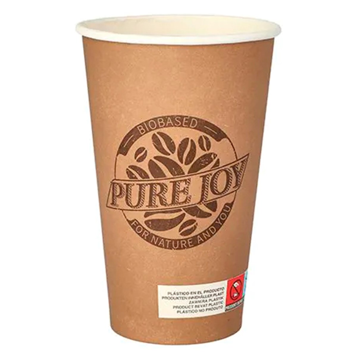 To Go-bägare Pure Joy tillverkad av papper med PLA-beläggning för varma drycker av alla slag. Tål upp till 90 °C. Ej lämplig för alkoholhaltiga drycker. Biologiskt nedbrytbar. Komposterbar enligt DIN EN 13432.
